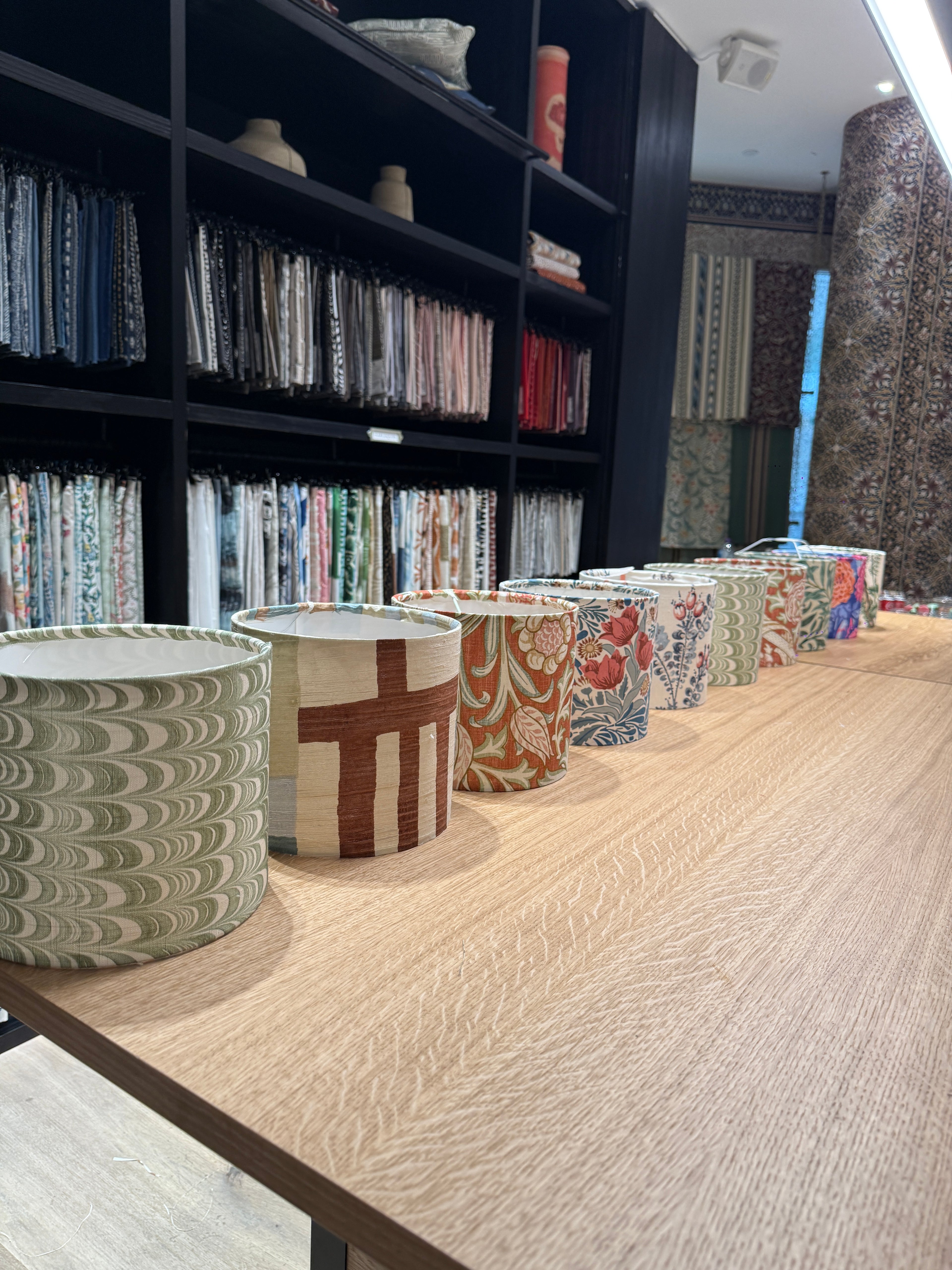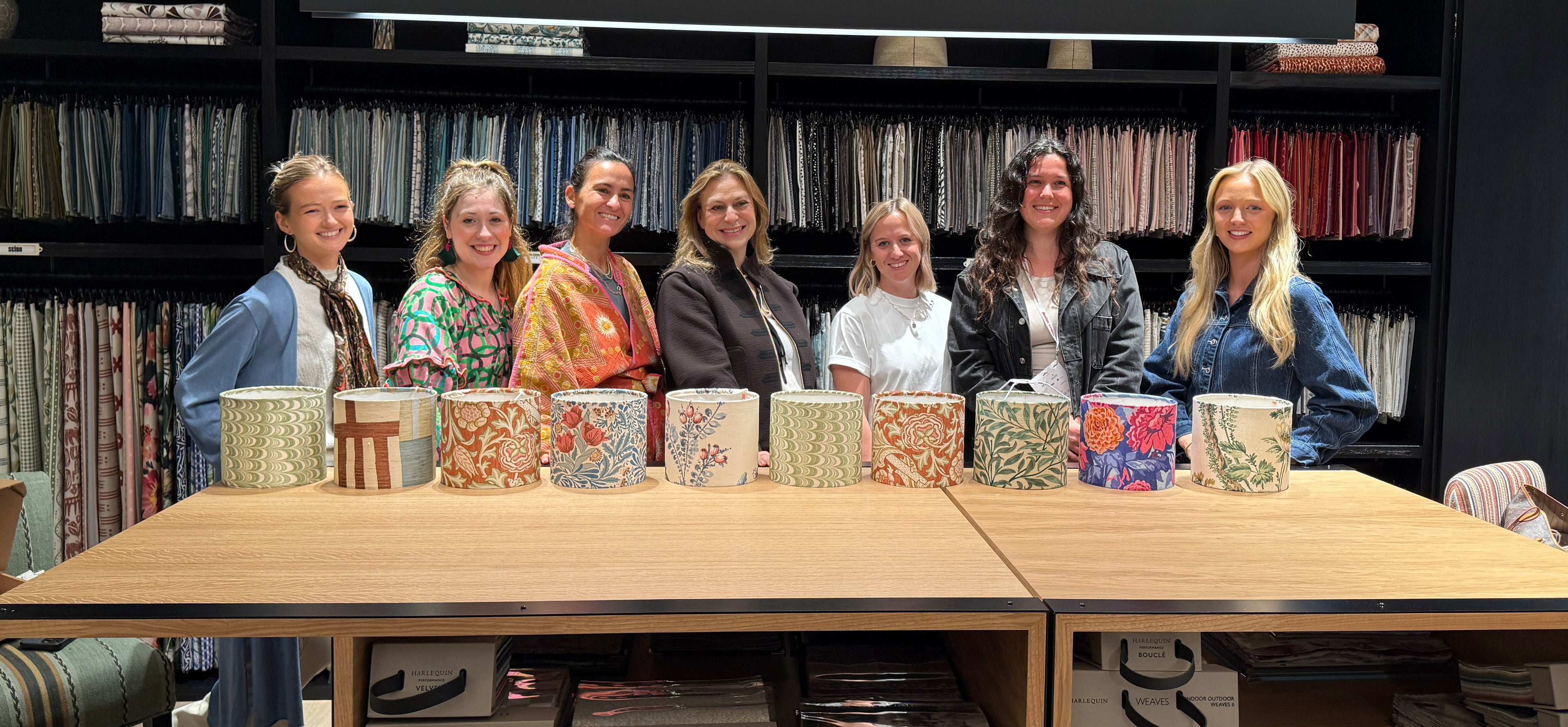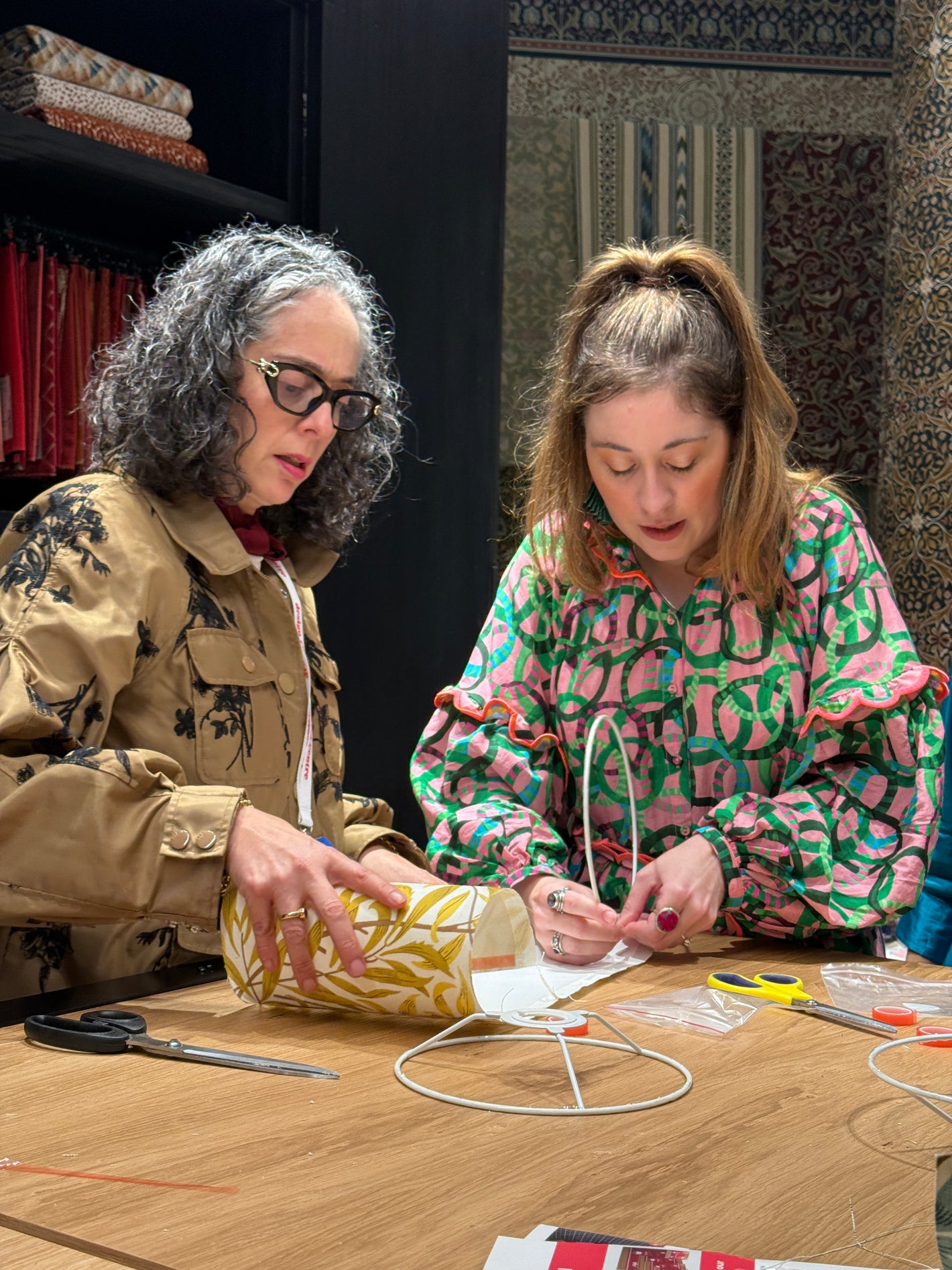 The workshop was led by our Head of Design, Cordelia Blair-Stickland, the session invited participants to transform Sanderson’s beautiful pre-consumer textile remnants into unique, handcrafted lampshades — celebrating creativity, craftsmanship, and sustainability.